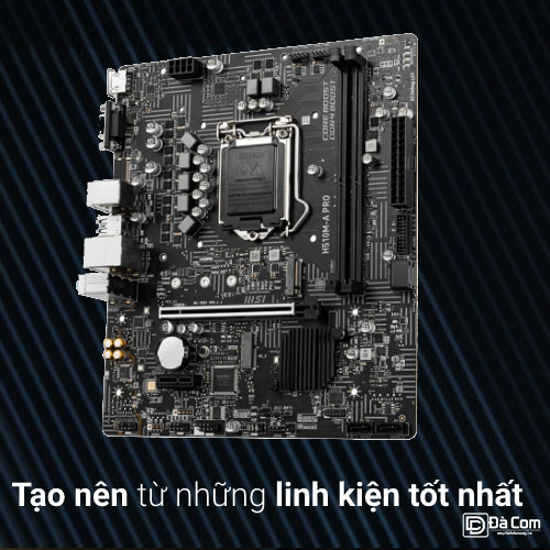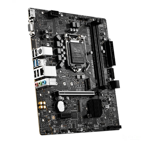 Với socket LGA 1200, MSI PRO H510M-A tương thích với các dòng vi xử lý Intel Core thế hệ thứ 10, bao gồm Core i3, i5, i7, cùng các mẫu Pentium Gold và Celeron. Sự linh hoạt này cho phép người dùng lựa chọn CPU phù hợp với ngân sách, từ các cấu hình cơ bản đến những hệ thống đòi hỏi hiệu năng cao hơn trong tầm giá.